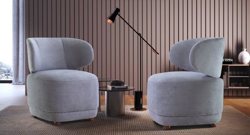 Poltrona com design curvo, ideal para ambientes residenciais e corporativos.