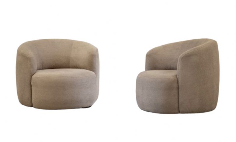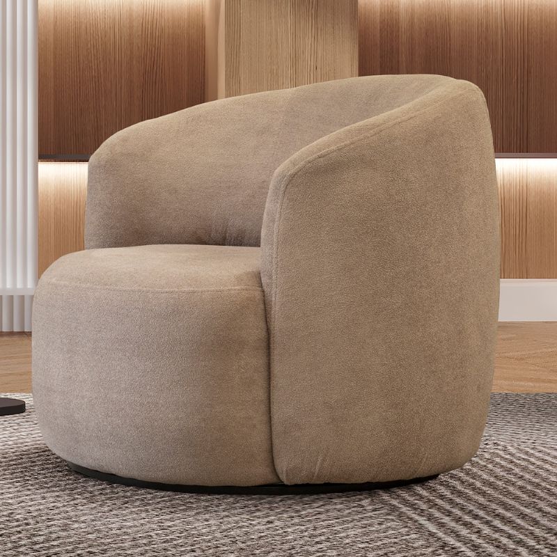 Poltrona Donna giratória fabricada com madeira reflorestada assento com espuma tecido Belluno bege.